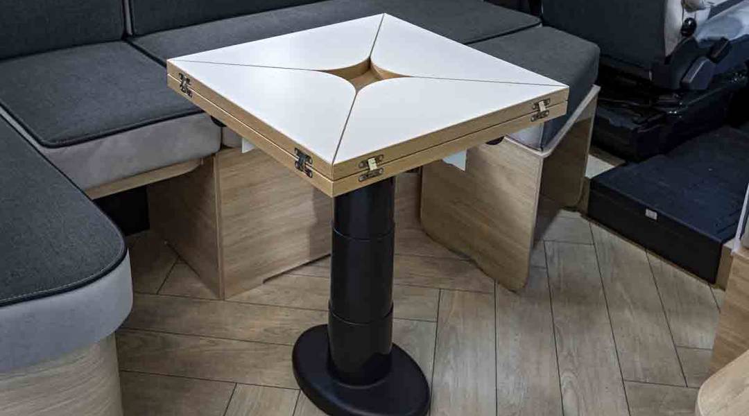 Unique, il propose deux portes d'accès à la cellule (une à l'avant, une à l'arrière), un salon en U modulable et une verrière pour séparer la cuisine du salon, tout cela en moins de 7 m !